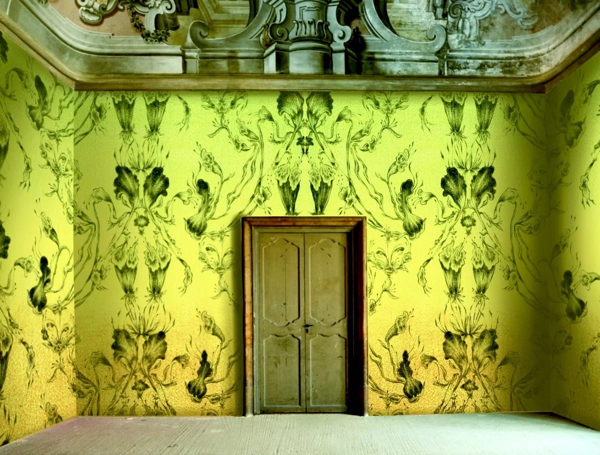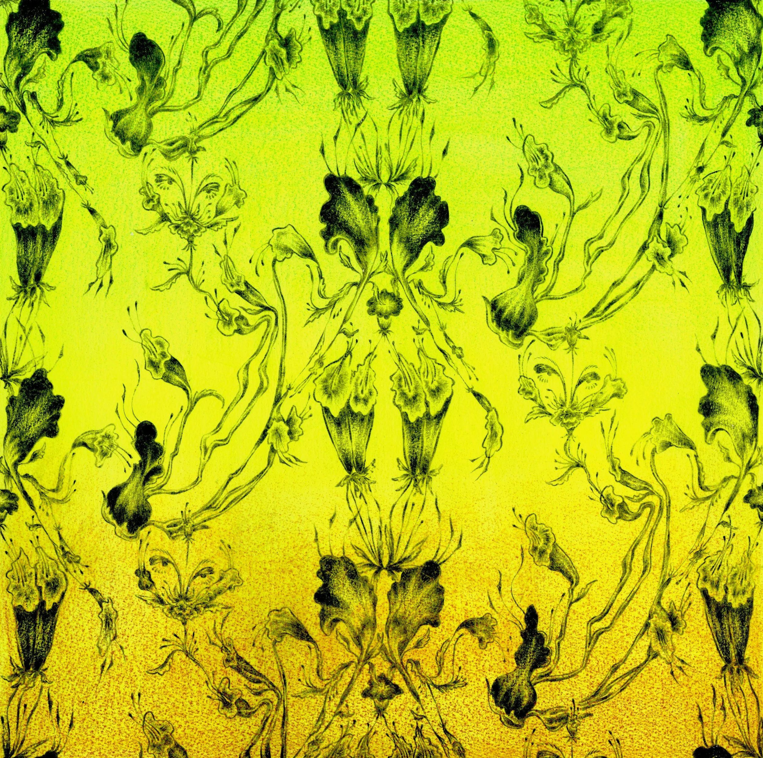 Botanical drawing and half drop pattern inspired by disguise. A yin and yang exploring why and when things pretend to be other things. Figures disguised as flowers paired with flowers disguised as figures.
